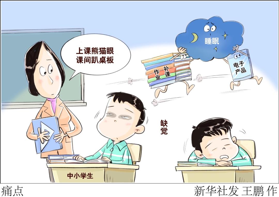 “上课熊猫眼,课间趴桌板”,不少中小学教师坦言,很多学生因为缺觉,上课无精打采,课间趴在桌上睡觉。