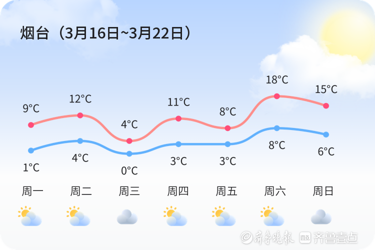全市周平均最高温11℃,平均最低温3℃,平均气温7℃,周最高气温18℃,出现在周六,周最低温0℃,出现在周三。
