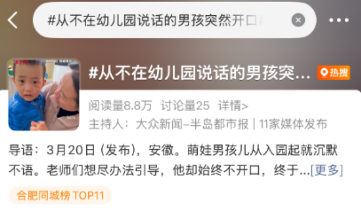 #从不在幼儿园说话的男孩突然开口#
