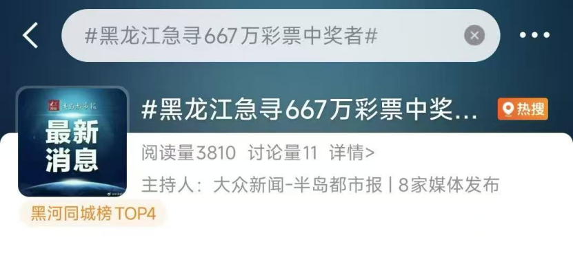 #黑龙江急寻667万彩票中奖者#
