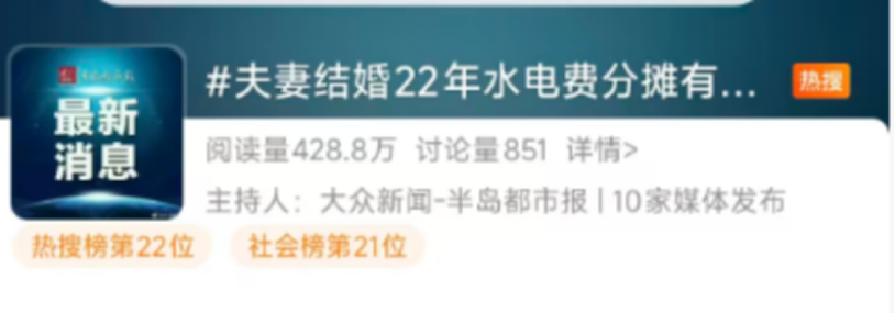 #夫妻结婚22年水电费分摊有零有整#