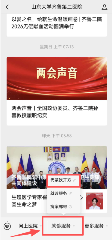 第一步:长按识别上方二维码或微信搜索关注“山东大学齐鲁第二医院”。