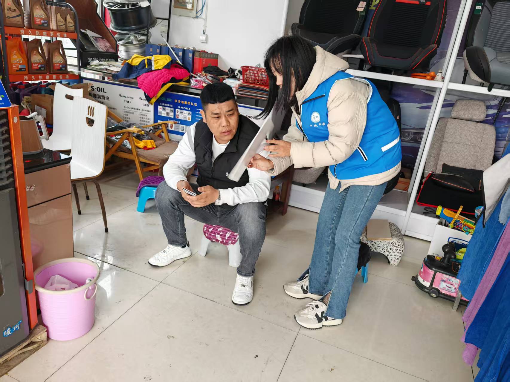 巡查中,网格员重点针对商铺消防安全、用电用气规范、货物堆放等关键环节开展“地毯式”排查,细致检查消防器材配备、电气线路铺设、应急通道畅通等情况。对发现的隐患问题,现场指导商户整改并叮嘱严格落实安全主体责任。同时,网格员耐心倾听商户经营诉求,详细了解实际困难,记录意见建议,并结合商铺特点普及消防安全、反诈防骗等知识,引导商户提升风险防范能力。