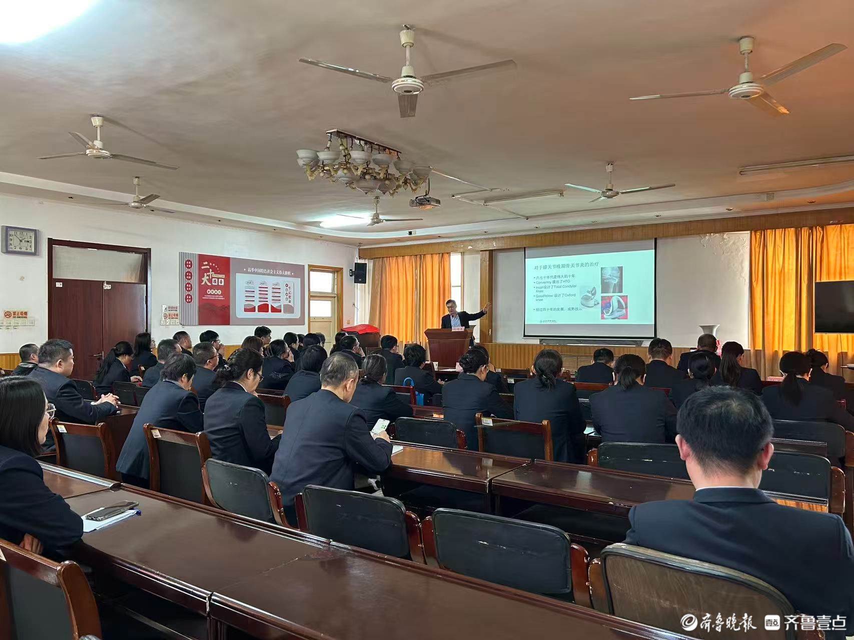 揭牌仪式后,活动进入学术交流环节。刘培来教授以其深厚的学术造诣和丰富的临床经验,为在场医护人员带来了一场题为《膝关节骨关节炎保膝理念》的精彩讲座。讲座既有前沿理论的高度,又有临床实践的深度,现场学习氛围浓厚,大家纷纷表示受益匪浅,对未来的临床工作具有极强的指导意义。