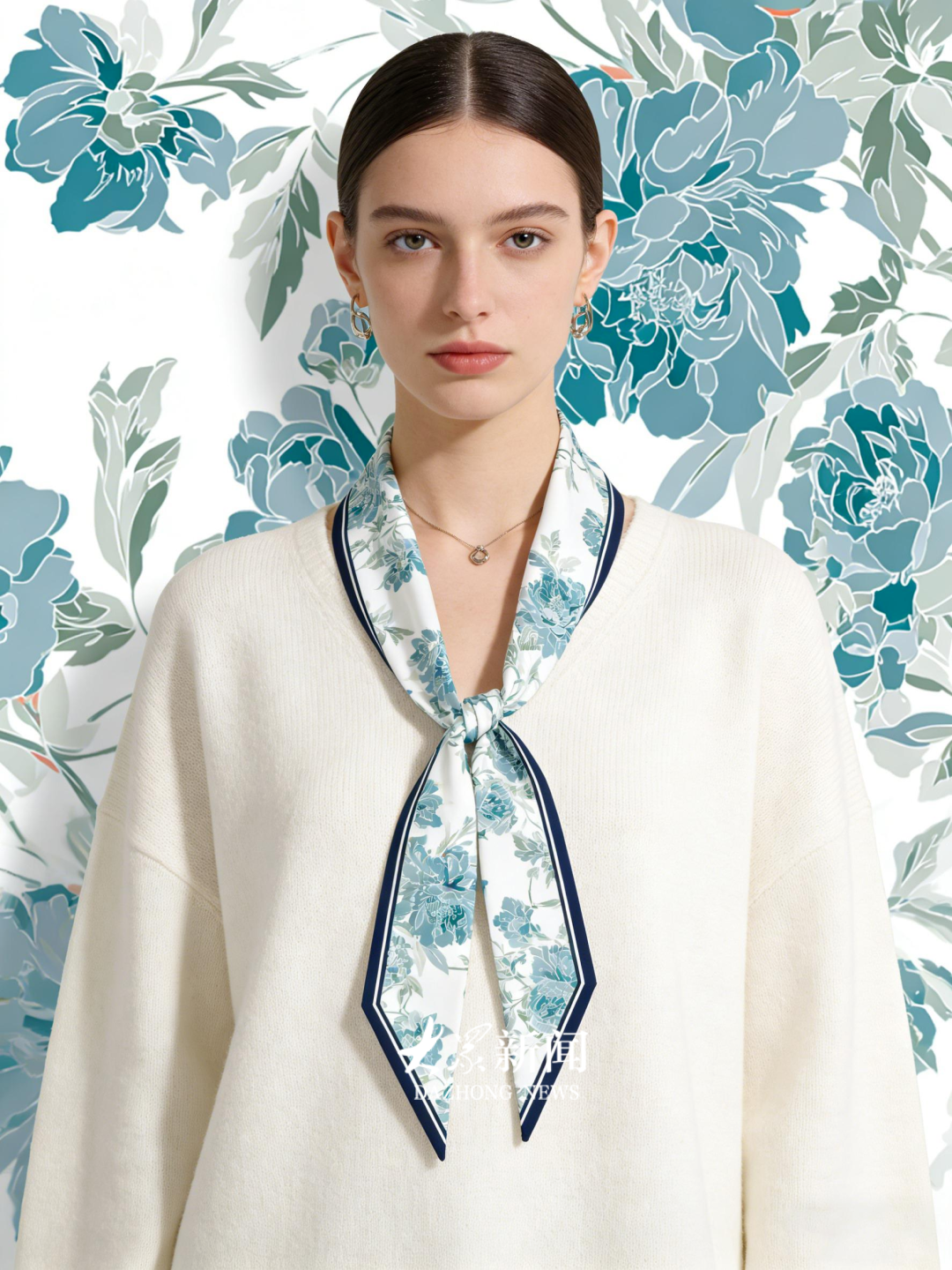 撷取牡丹的清雅风骨,将东方诗意与现代审美融于一方丝缎。这款长条丝巾以澄澈的青蓝为主调,勾勒出水墨牡丹的绰约风姿,花瓣晕染细腻,枝叶舒展自然,仿佛将春日园林的静谧与生机随身携行。