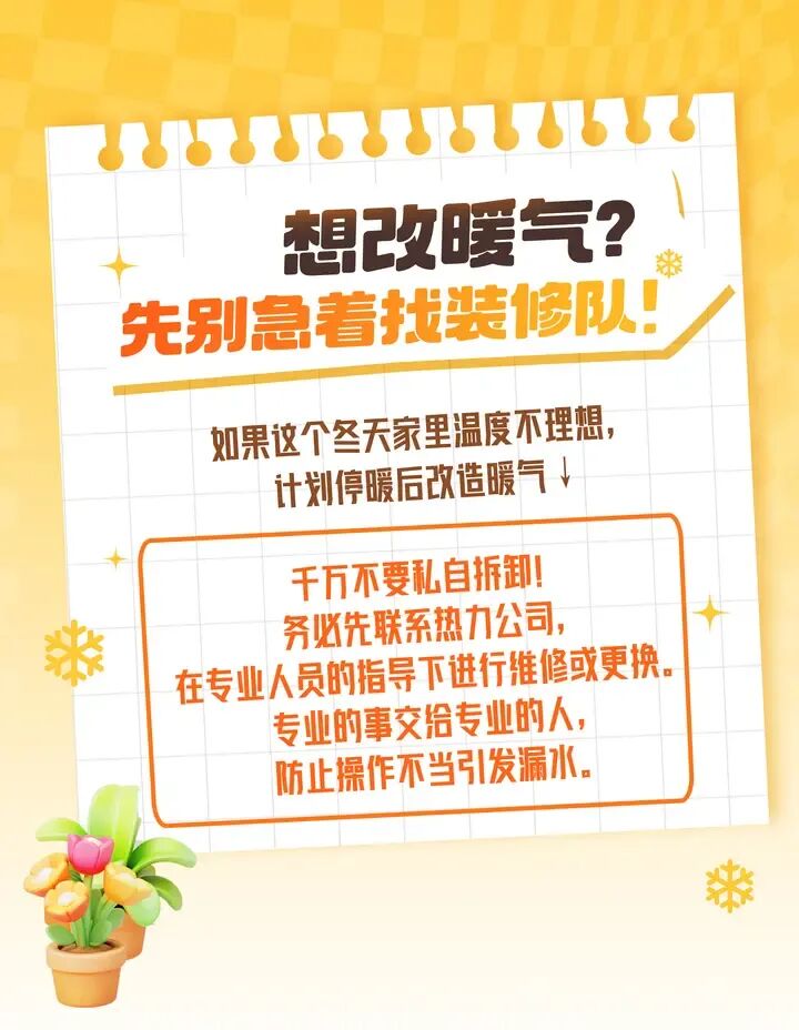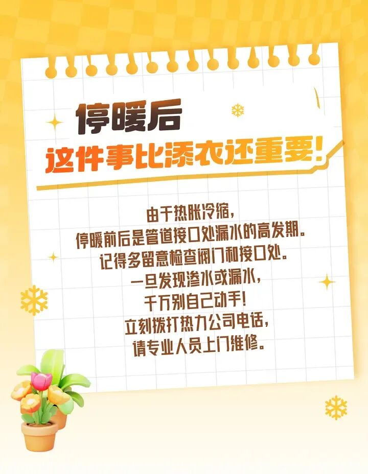 三月,迎春花开了,暖气要“歇”了。阀门拧不拧?水放不放?……供暖结束后,5件小事要留意↓↓