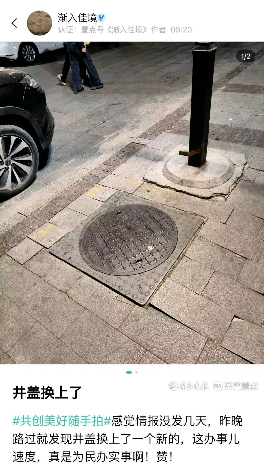 情报站·随手拍|管用!泰安通天街缺口井盖已换新,安全隐患消除