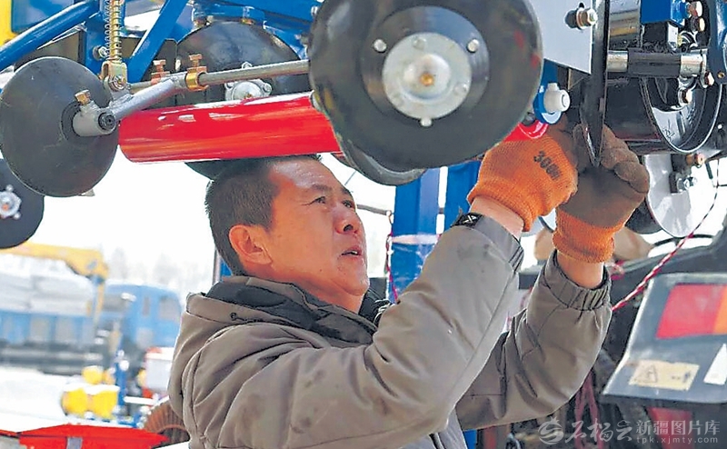 3月15日,奇台县一农机销售店员工在检修农机。连日来,奇台县通过“技术人员下沉+合作社自主检修”模式,确保每台农机都能正常运转。李逸凡摄