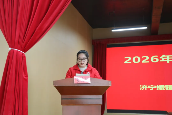 支教师生代表先后表态发言。带队教师代表表示,将切实履行带队职责,做好支教大学生的管理与服务工作,助力大家快速完成角色转变,顺利开展教学工作。支教大学生代表则以铿锵的话语表达了援疆支教的坚定决心,承诺将牢记育人使命,严守纪律、虚心学习,以饱满的热情和扎实的作风投入到支教工作中,用知识与爱心浇灌边疆学子成长,架起鲁疆教育交流的连心桥。