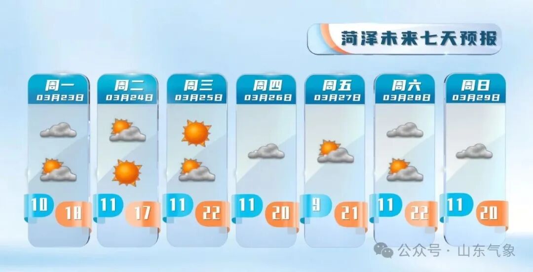 今天3月23日,是2026世界气象日。世界气象组织将主题确定为“测今日气象,护明日家园”,旨在呼吁国际社会,共同携手积极行动,强化监测预报预警,更好洞悉地球系统风云变幻,共同守护人类家园。来看天气未来一周,多地将体验超前暖意,预计未来一周我省大部时段天气晴好,26日前后多地最高气温升到26℃左右,28日前后局部有雷雨或阵雨,请注意防范。未来一周各地天气预报