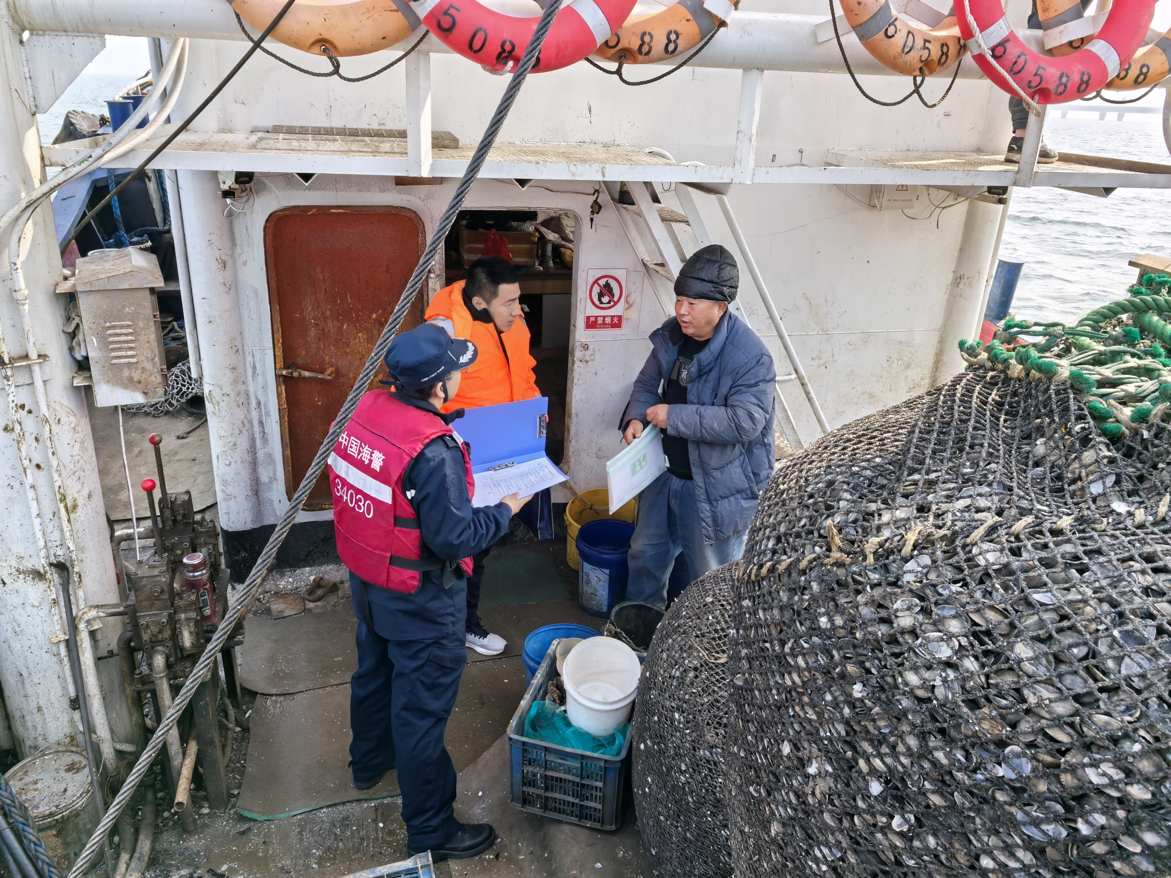 此次行动,联合执法组采取海上巡、登船查的方式,对作业渔船进行随机登检。重点检查渔船证书证件是否齐全有效,船员配备是否符合规定,救生消防设备是否按规定配备并保持完好有效。同时执法人员向渔民发放宣传材料,面对面讲解春季海上作业注意事项,并结合近期发生的海上安全生产事故案例,提醒渔民吸取教训,克服麻痹思想。其间,双方共出动执法艇2艘,执法人员20余人,登临检查渔船5艘次,对辖区重点海域进行了巡查。