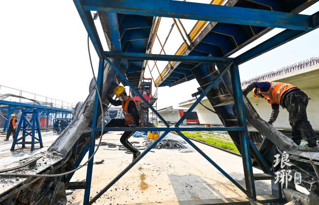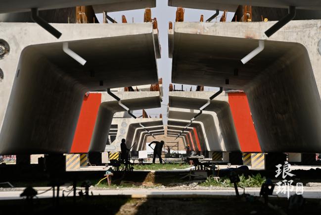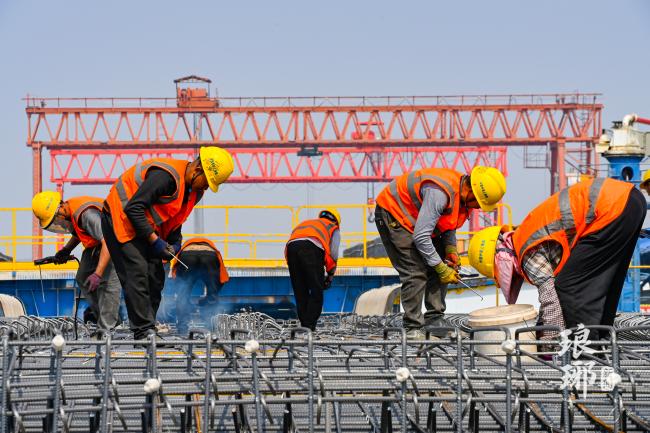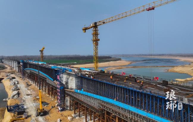 3月22日,潍宿高铁郯城段建设现场一派繁忙。在中铁上海局郯城制梁场,施工人员身着防护服,在生产区内规范作业、有序忙碌。各标段抢抓施工黄金期,紧盯进度、严把质量,全力推进工程建设,为潍宿高铁早日建成通车夯实基础。