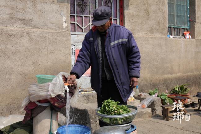 正在放水洗菜的张义胜大爷。