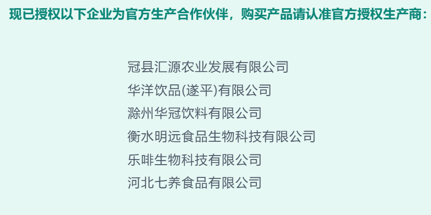 手持“汇源果汁”的文盛资产(北京汇源),也在忙着补生产线的短板。2026年以来,北京汇源先后授权冠县汇源农业、华洋饮品(遂平)、滁州华冠饮料三家工厂作为首批代工商。