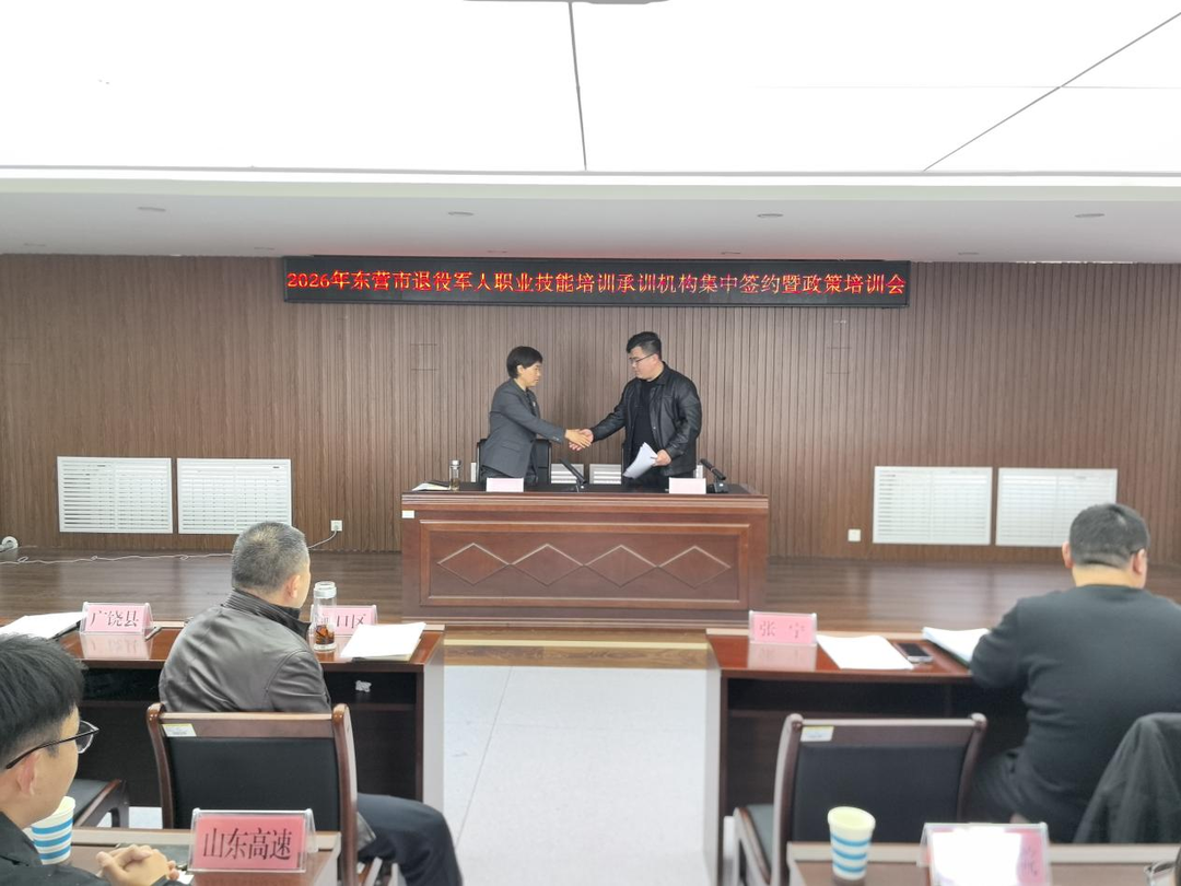 本次集中签约暨培训会,不仅加强了退役军人事务部门与承训机构的沟通协作,也为2026年全市退役军人职业技能培训工作的顺利开展奠定了坚实基础。下一步,东营市退役军人事务局将持续优化培训服务体系,推动退役军人职业技能培训工作提质增效,助力广大退役军人在新时代的舞台上建功立业。(大众新闻记者 刘海文 通讯员 何晓辉)