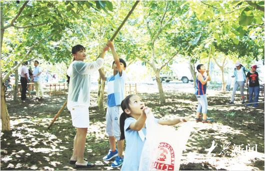 游客们在核桃林里打核桃。(资料图)