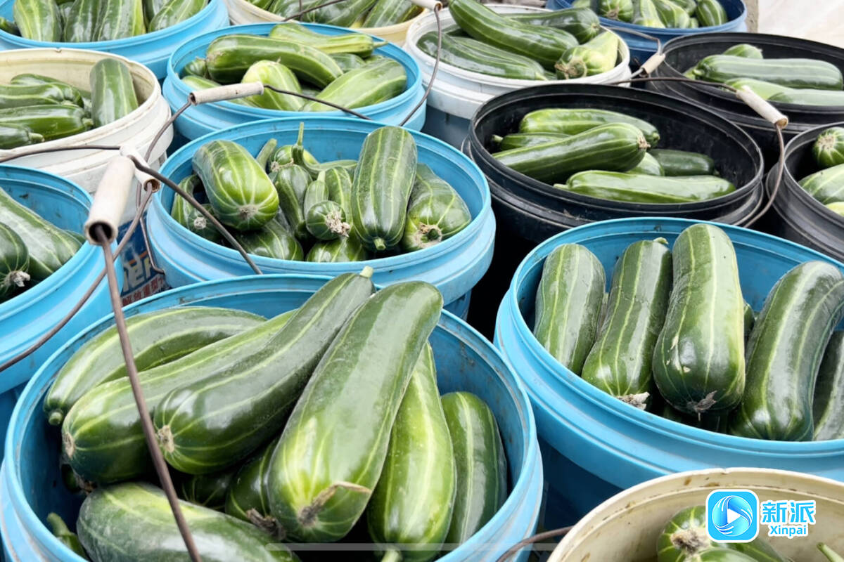 采摘下来的脆瓜等待被运走。