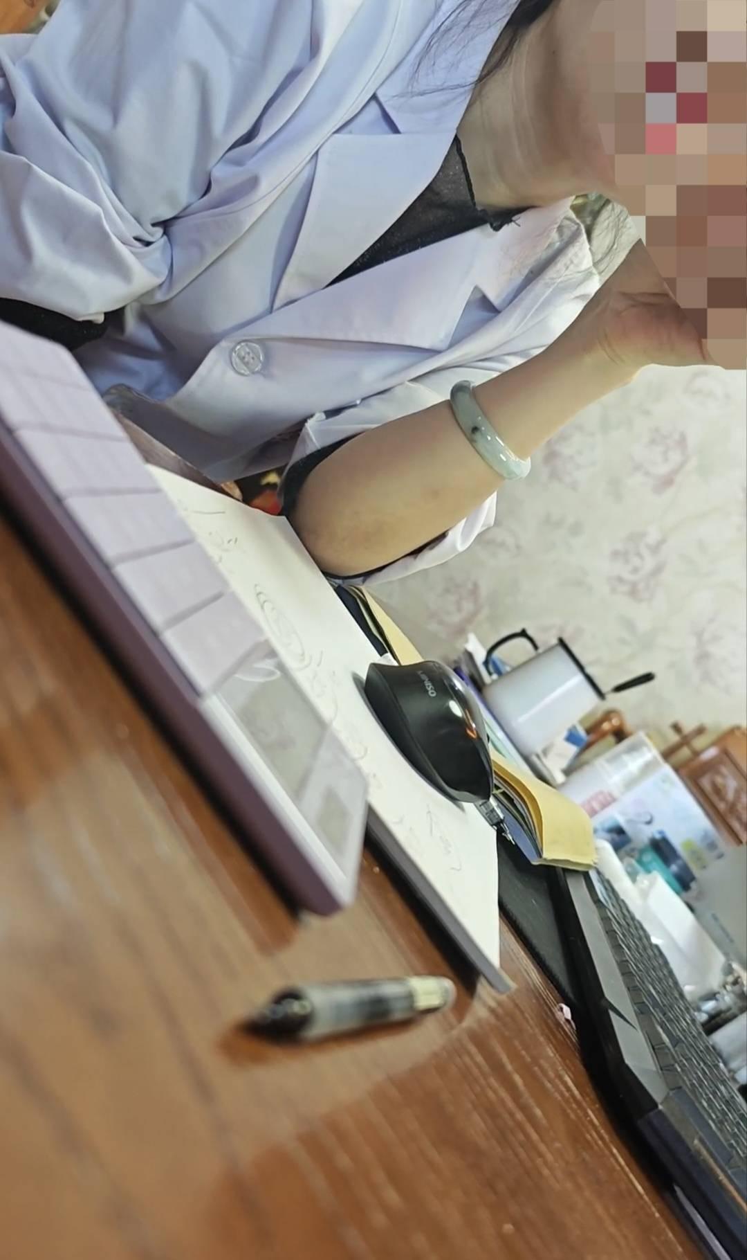 雅纤在两场手术间隙打来视频电话,展示刚做完的手术效果。