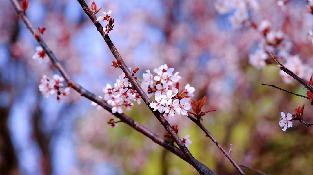 春风有信,花开有期。堤岸两侧,紫叶李花开正酣,粉云漫卷长堤,粉白相间的花朵密密匝匝,如云似雾。微风拂过,花瓣轻舞,花影婆娑,将整条长堤染成一片浪漫的粉霞。