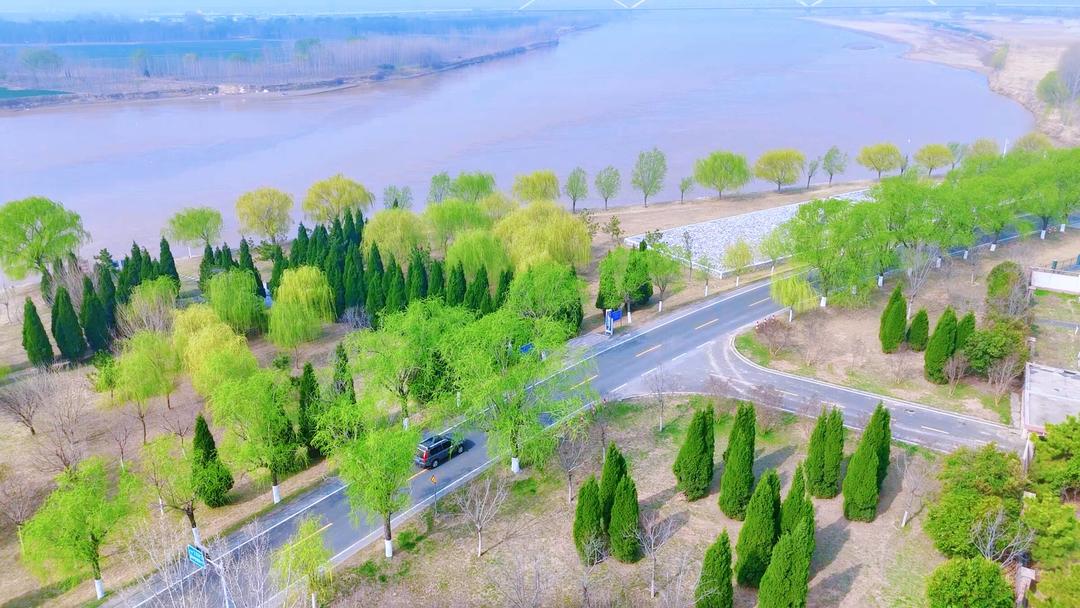 春日之黄河大坝,流淌着生机与诗意