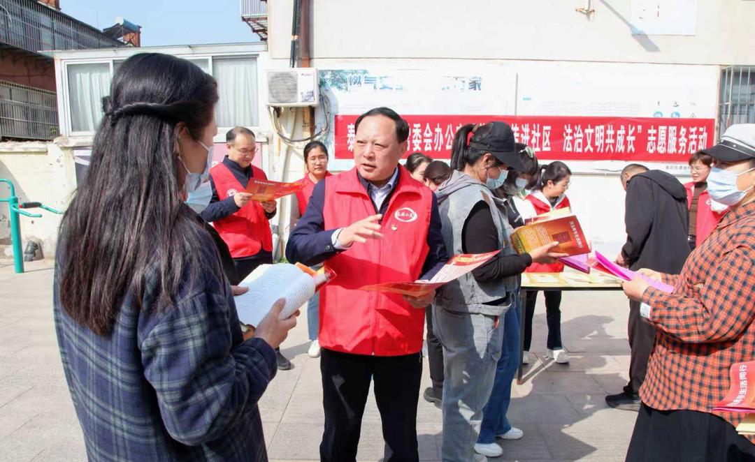 普法的核心生命力,在于走进群众,深入人心。泰安市人大常委会机关党员干部深入基层、贴近群众,在泰山区金山社区,干部与居民围坐一处、促膝交谈,聚焦房屋漏水、遗嘱订立等群众关心的事,结合真实案例现场“以案说法”,让法律条文真正成为守护群众生活的实用指引。在校园里,机关工作人员化身“宪法讲师”,开展“宪法进校园 法治伴成长”特色课堂,将抽象法条转化为生动故事,把法律知识融入校园生活,通过宪法晨读、模拟宣誓、互动竞答等形式,让青少年在寓教于乐中感悟法治力量,系好人生“法治第一粒扣子”。