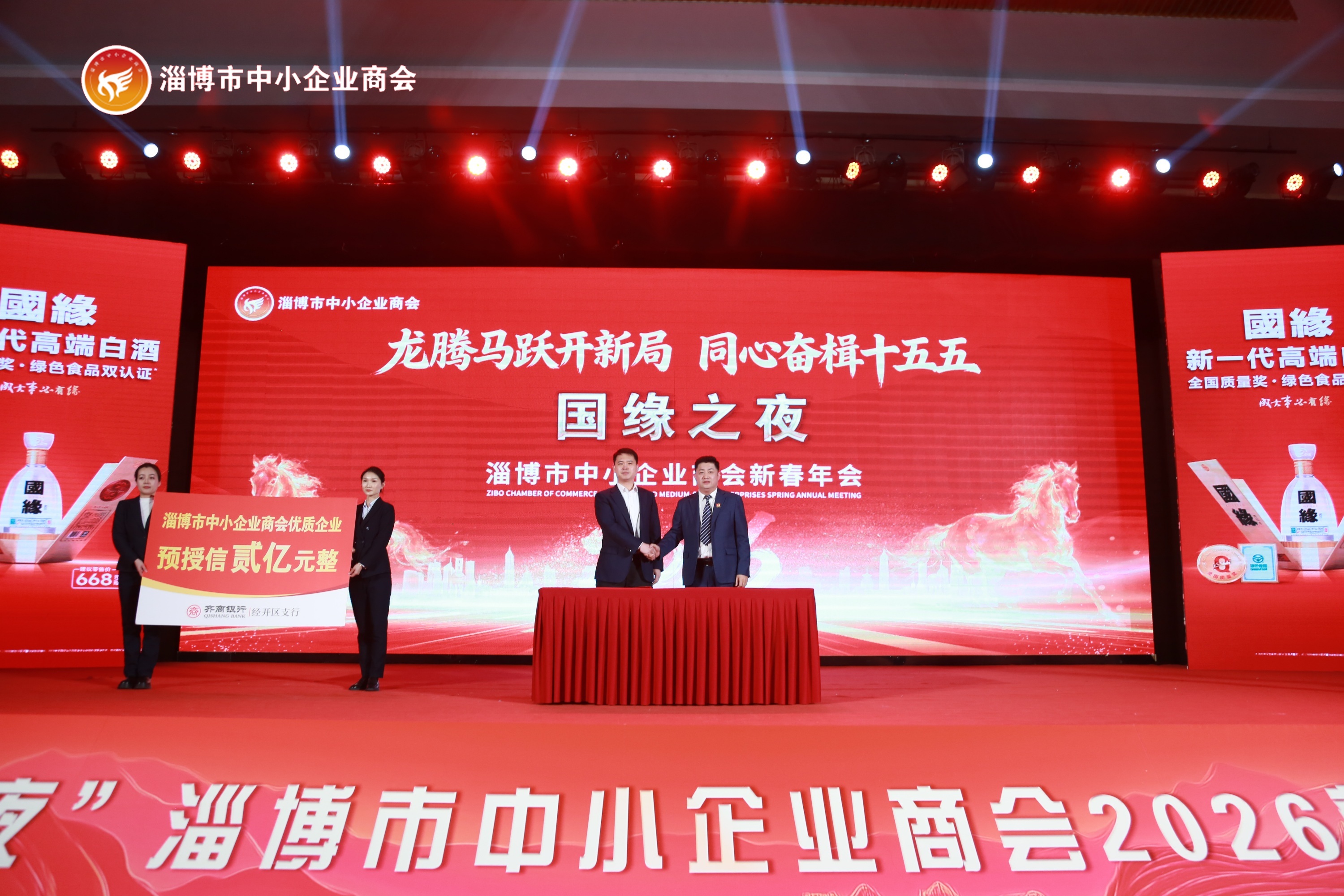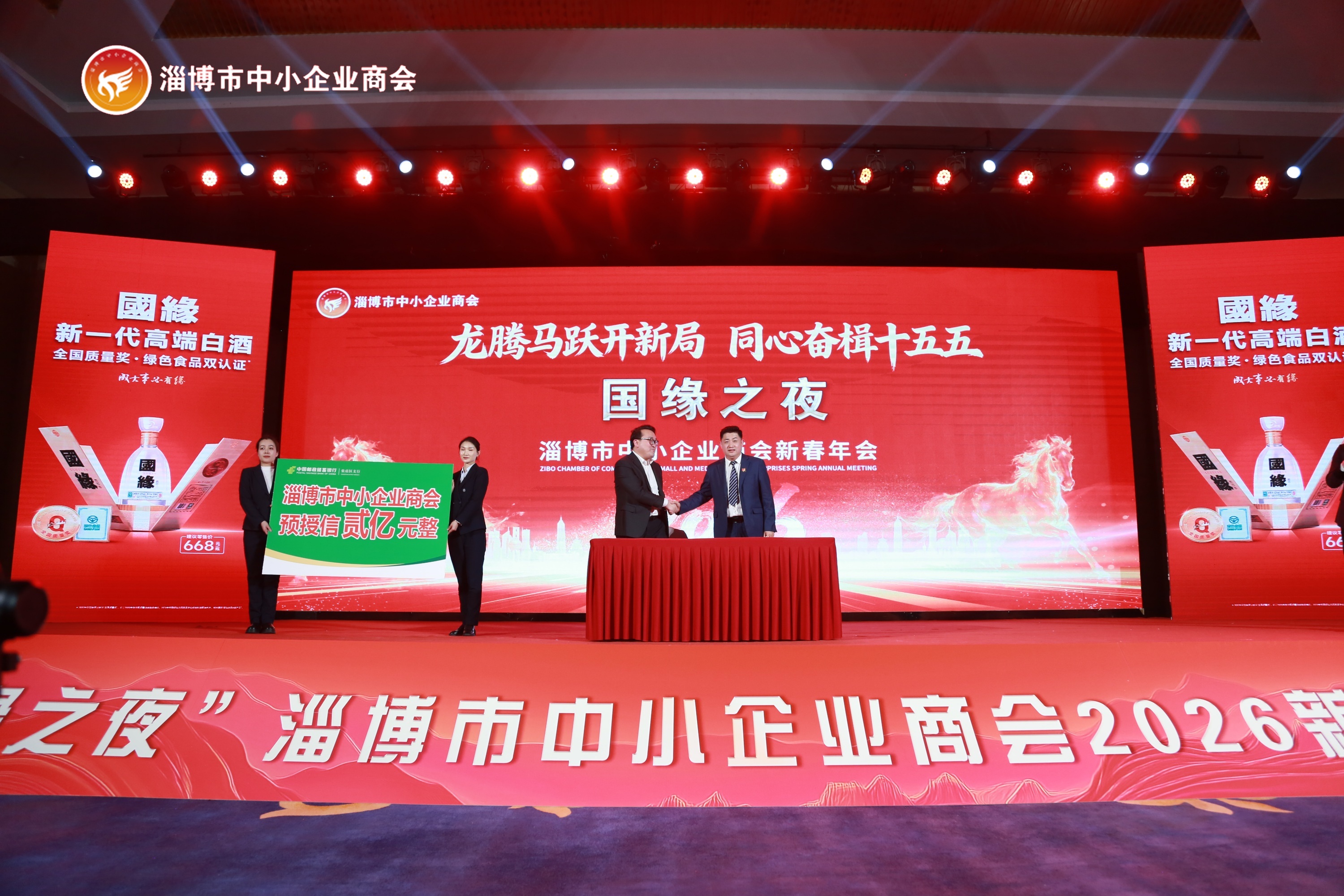 为破解中小企业融资难题,年会现场举行了银企战略合作签约仪式。淄博市中小企业商会分别与齐商银行、中国邮政储蓄银行淄博市分行签署协议。两家银行各为商会会员企业提供2亿元授信,总额达4亿元。这笔金融“及时雨”将精准滴灌实体企业,为淄博民营经济发展注入源源不断的金融动能。