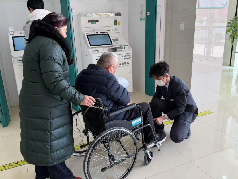 业务办理完毕后,张先生及陪同家人对工作人员的服务连连称赞:“本来还担心行动不便办业务麻烦,没想到农行的服务这么周到,全程有人帮、有人扶,真是太感谢你们了!”