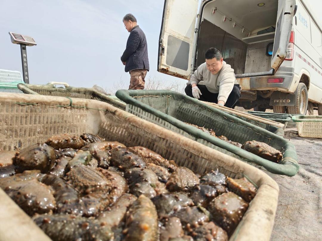 作为全国海参主产区之一,即墨区海参养殖主要分布在田横海域和丁字湾畔。丰富的海藻资源和冷水域慢生长环境,使这里成为海参生长的天然牧场。近年来,当地通过标准化池塘改造、推广绿色生态养殖技术,不断提升海参品质。即墨区田横镇渔业服务中心负责人于春林介绍,目前全镇4万多亩头茬春参已陆续开始收获,收获期将持续到“五一”前后。“按照往年的经验,收获最高峰时日上岸量能达到10万斤。我们也在积极对接收购商,帮助养殖户拓宽销路。”于春林说。