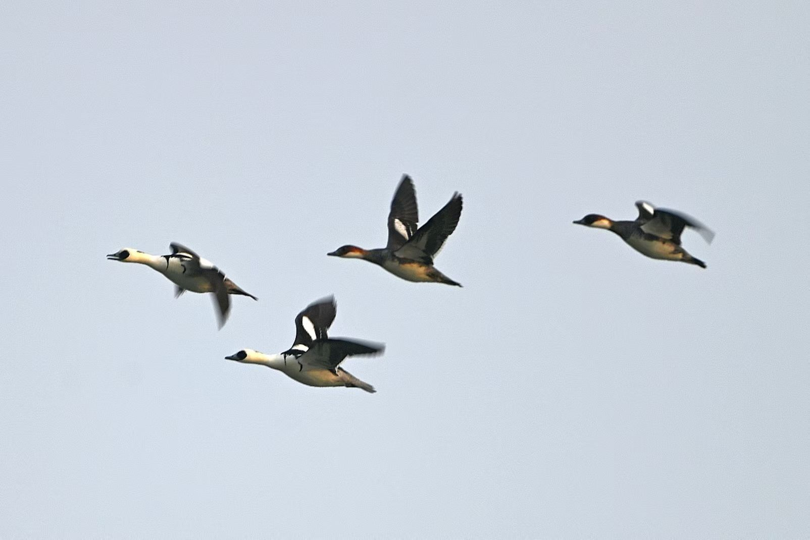 近日,数十种选择在北方繁殖生息的候鸟陆续抵达阳信境内,鸟飞鸟落,蔚为壮观。摄影爱好者岳荣德用镜头记录下这一盛况,其中不乏国家一级保护野生鸟类青头潜鸭,以及斑头秋沙鸭、白琵鹭、红隼、黑翅鸢、震旦鸦雀、长耳鸮等国家二级保护野生鸟类。此外,鹤鹬、灰头鹀、苍鹭、白鹭、田鹀、苇鹀、黄喉鹀、小鹀、环颈鸻、金眶鸻、白鹡鸰、家燕、喜鹊、细嘴鸥、斑头鸭、棕头鸦雀、白眼潜鸭、黑水鸡、白骨顶、啄木鸟、蝙蝠、绿翅鸭、翘鼻麻鸭、罗纹鸭、凤头䴙䴘、小鸊鷉、棕背伯劳、燕雀、灰椋鸟、白腰草鹬、反嘴鹬、扇尾沙锥、水雉、凤头麦鸡、黄腹鹨、长尾山雀等众多鸟类也纷纷现身,构成了一幅生机盎然的生态画卷。