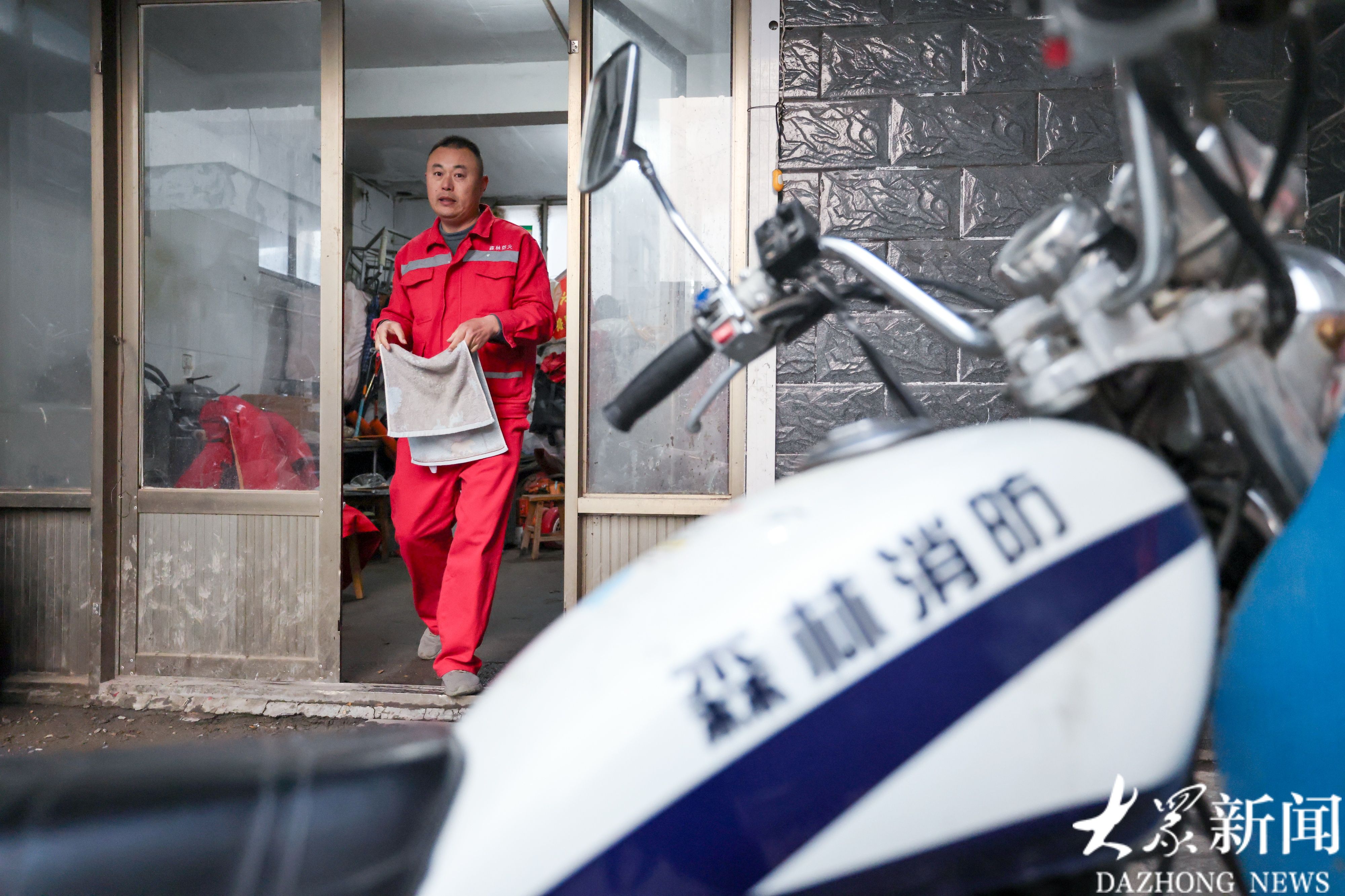 姚张昊哲在物资仓库认真整理防火装备。经过两年的基层历练,他已从父亲和身边同事身上,积累了扎实的防火经验。