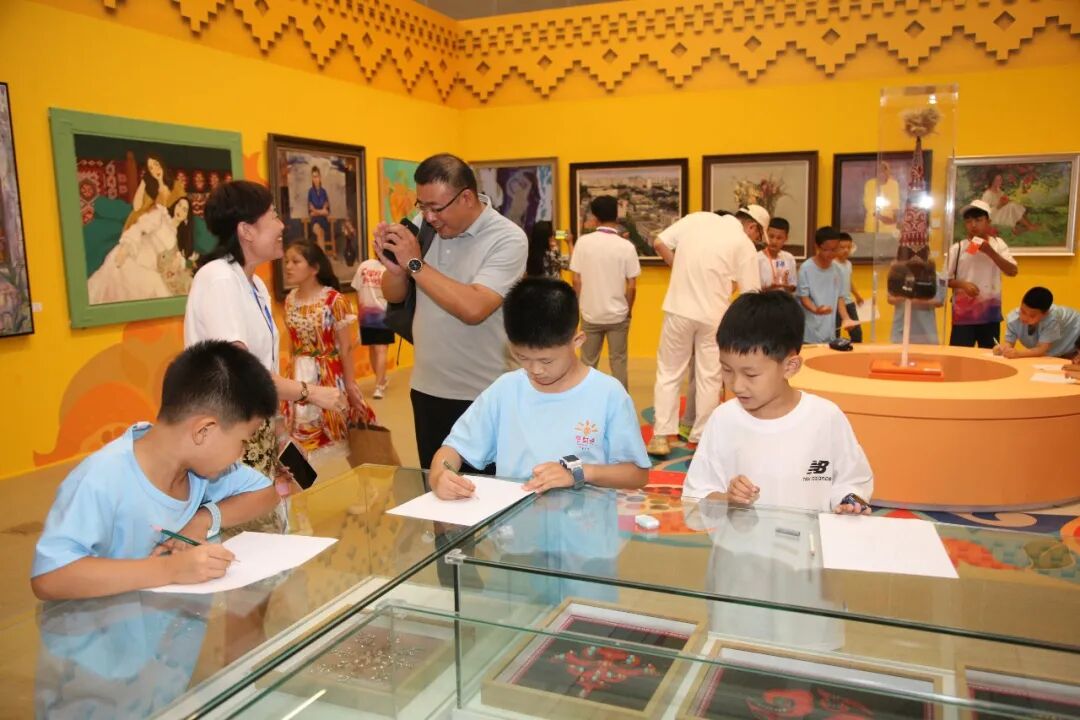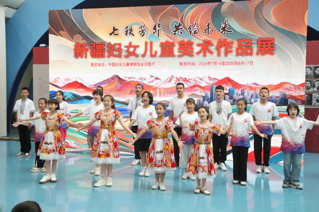 孩子们在新疆妇女儿童美术作品展上表演。喀什地区驻村工作办公室供图