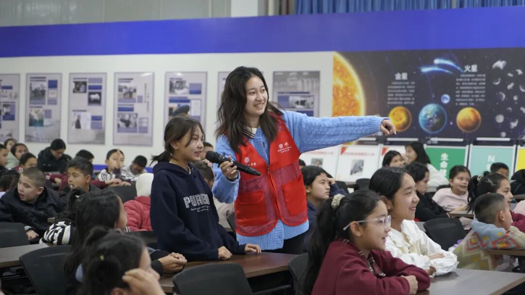 支教老师在科普课堂上与孩子互动。喀什地区驻村工作办公室 供图