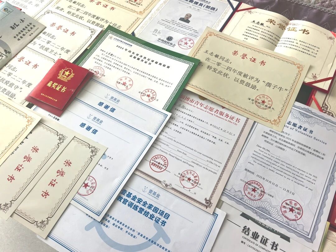 “这是密云救灾的荣誉证书,这是辽宁葫芦岛救灾的荣誉奖章,这是咱们市里颁发的证书……”城际救援队22支队支队长王志敏将一张张荣誉证书铺开,摆满了家中的茶几。三十张证书,样式各异、落款来自天南地北,斑驳字迹镌刻着王志敏作为一名志愿者的坚守与奉献。