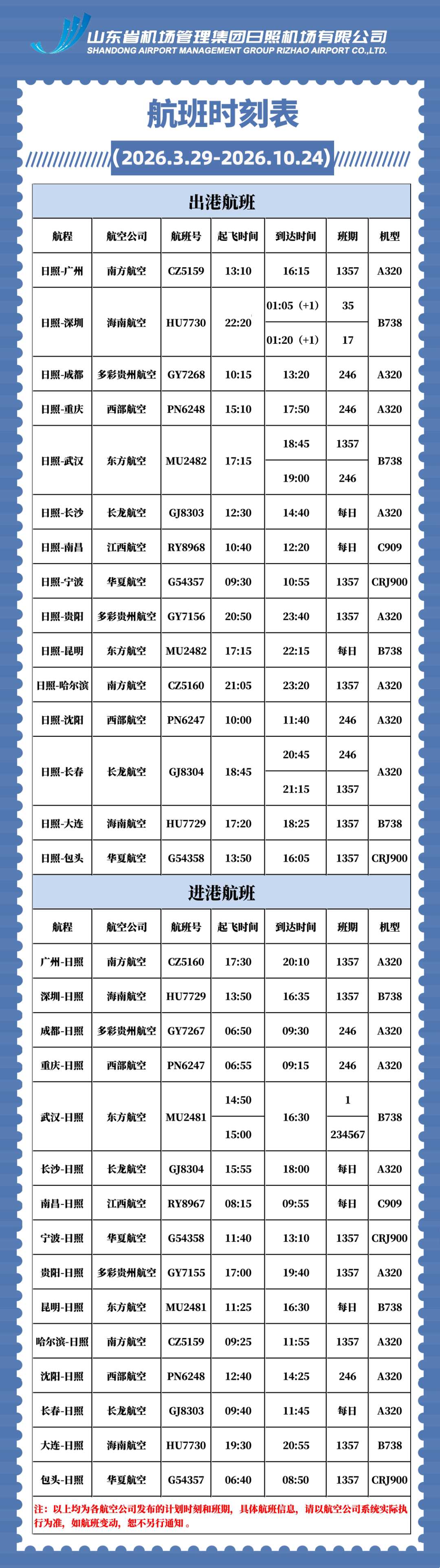 29日起!日照新开长沙、贵阳、宁波、长春、包头航线!