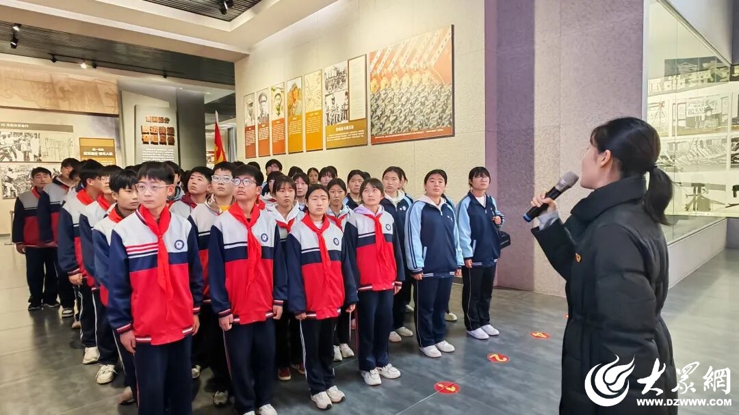 青砖黛瓦,草木无言,却见证着近百年前那束划破黑夜的星火。在讲解员的深情讲述中,同学们缓缓步入那段峥嵘岁月——一件件斑驳的文物,定格着奋斗的姿态;一张张泛黄的照片,诉说着不屈的脊梁;一段段荡气回肠的故事,将鲁南第一支部从萌芽到燎原的历程,深深镌刻进少年心底。脚步轻叩石阶,仿佛在与历史回响共鸣;目光凝望展陈,信仰的种子悄然生根。