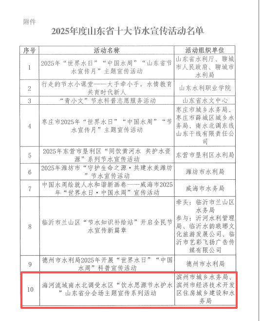 滨州节水宣传活动入选省十大节水宣传活动名单