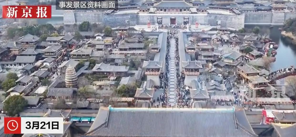 公开信息显示,盛世唐城景区位于湖北省襄阳市襄城区十家庙社区,是集文化旅游、影视拍摄和全景演绎为一体的大型综合性旅游景区。