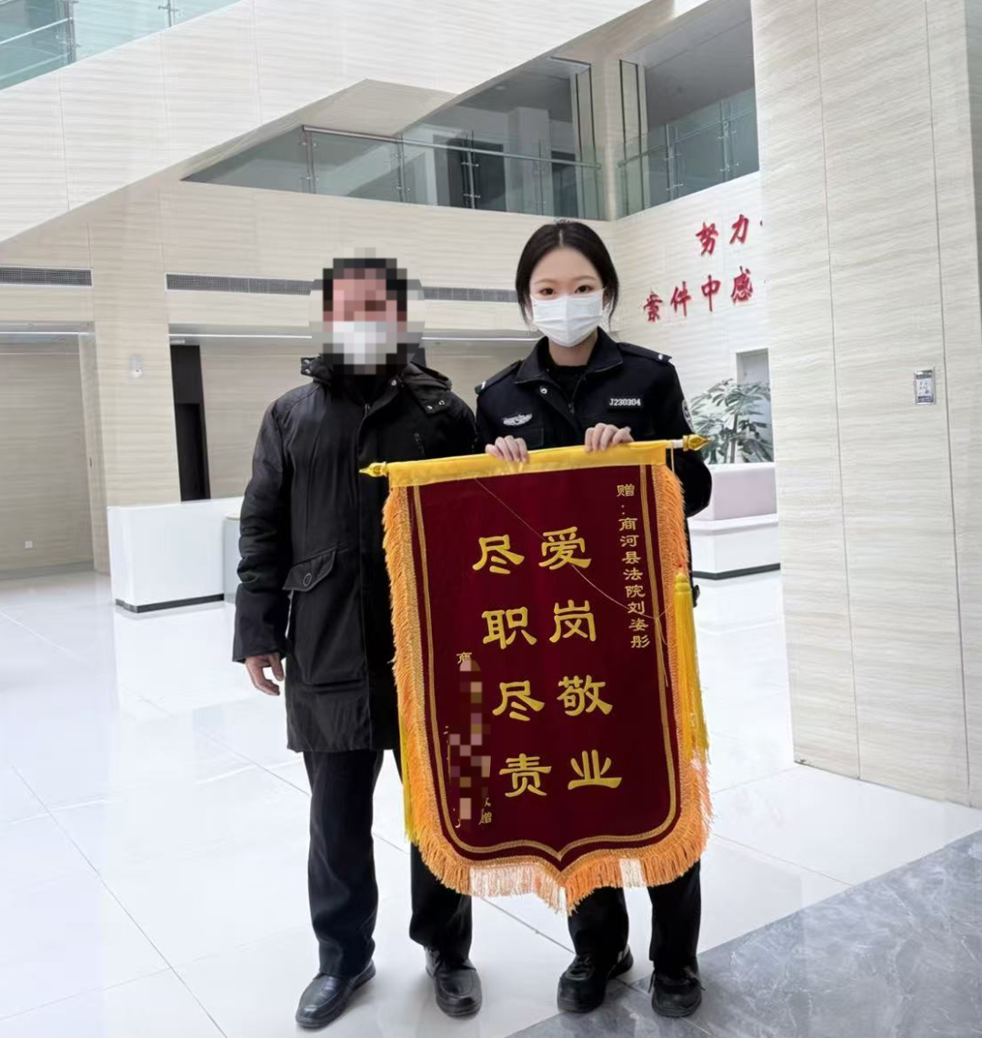 近日,商河县人民法院立案庭诉讼服务中心迎来温情一幕:两位群众专程将两面写有“爱岗敬业 尽职尽责”“怀爱民之心 办利民之事 排忧解难 心系百姓”的锦旗送到法院,向立案庭实习生刘姿彤的暖心服务表达感谢,同时也为立案庭高效便民、司法为民的工作作风点赞。