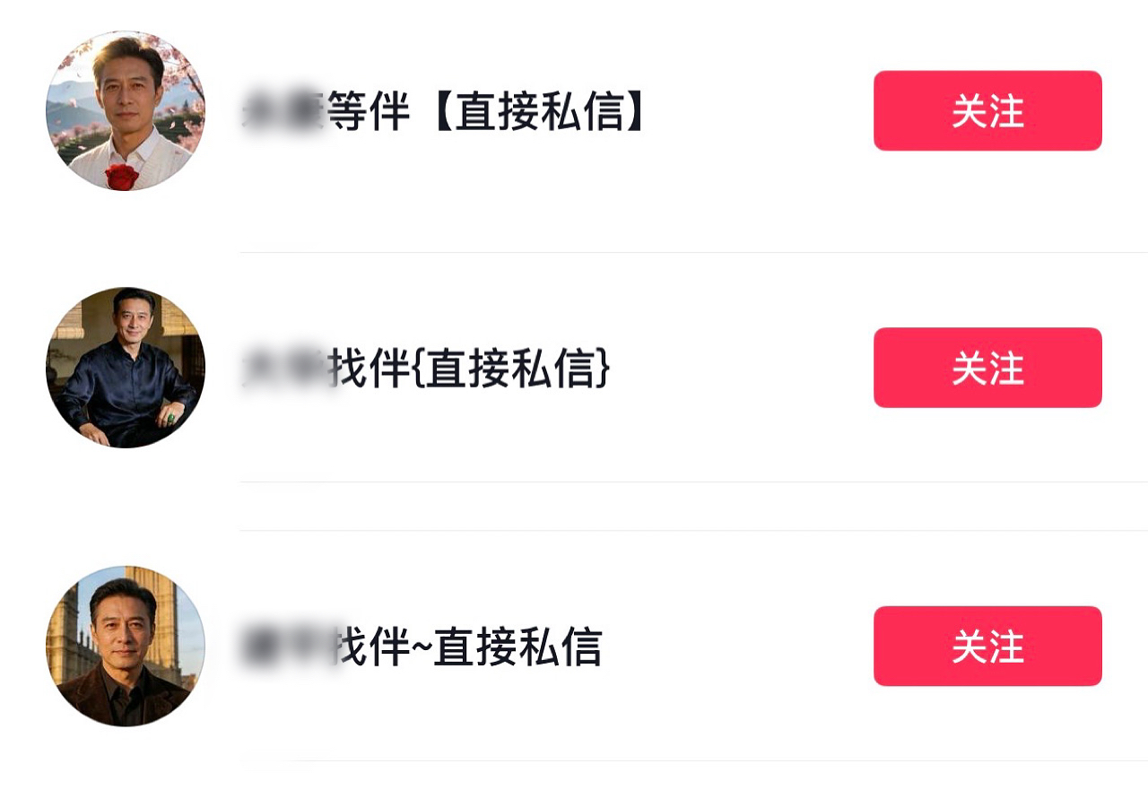 部分用户的关注列表中,频繁出现诸如“xx找伴”“xx等伴-直接私信”等账号