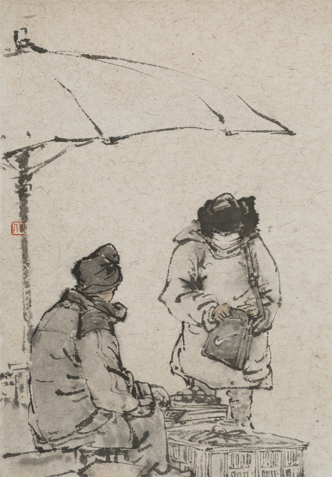 《晨雪市声》作者:王宇鹏 纵33cm 横21cm