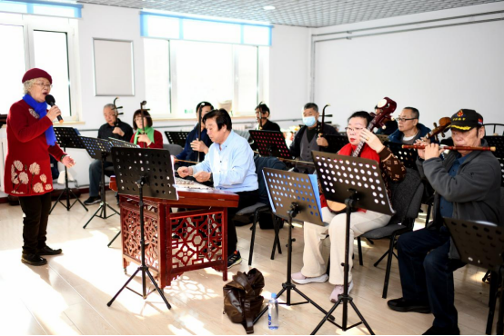 荷花民乐团是社区文化亮点,这支由中老年音乐爱好者组成的公益性团体现有50余名演奏员。在社区党委带领下,历经十余年发展,乐团已成为规模完备、管理规范的专业民乐团队。谈及乐团的发展,荷花民乐团团长李新敏满是感慨:“社区给我们提供了太多方便,不光帮忙复印乐谱,还专门提供排练室,现在的排练条件比过去好太多了,冬天有暖气、夏天有空调,大家排练起来更舒心。咱们乐团成员平均年龄70岁,有了这么好的平台,退休生活也添了不少色彩,日子过得充实又开心。”