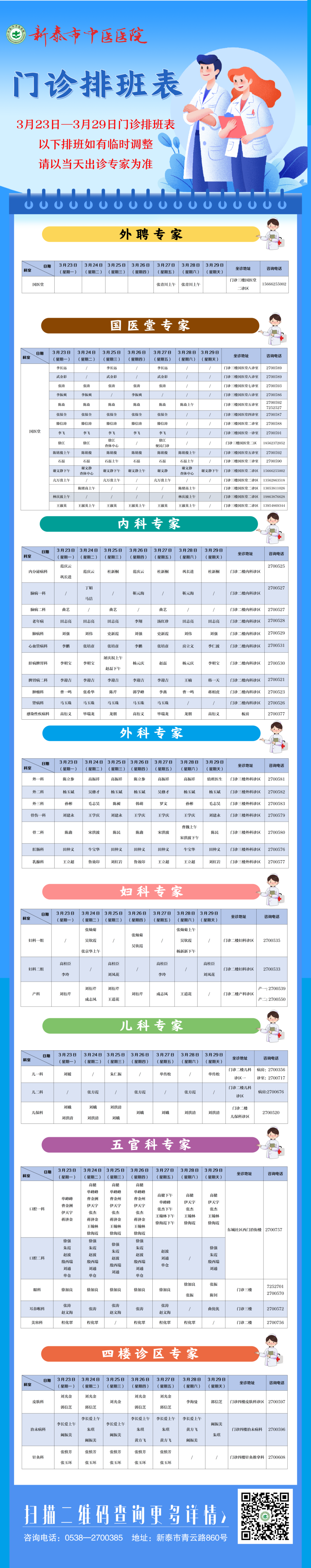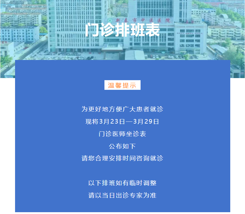 新泰市中医医院3月23日—3月29日门诊排班表来了,快来预约您心仪的专家吧~