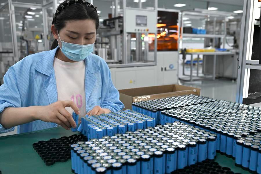 지난해 5월 14일 작업자가 안후이(安徽)의 한 생산 작업장에서 리튬 배터리를 조립하고 있다. (사진/신화통신)