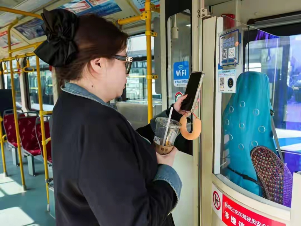 公交车实现“免费WiFi”全覆盖,惠及了不同年龄段的乘客群体。62岁的李先生与老伴因资费套餐中的数据流量有限,平时外出时经常关闭移动网络。得知637路提供免费WiFi后,他们尝试连接,发现操作简单直观。“扫码或碰一碰就能连上,对我们老年人来说也很容易,以后坐车不用担心流量了。”李先说。