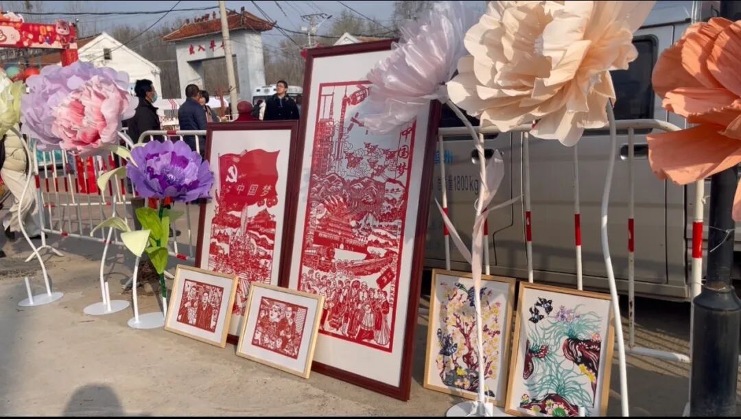巨型纸花【春色满园】,气势恢宏,仿佛将满园春色搬进庙会,引得游客纷纷驻足拍照;