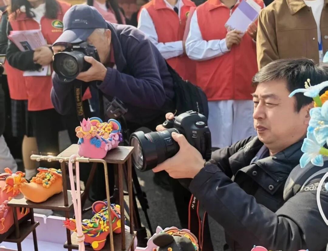 展销现场,师生们不仅展示了精美的作品,更化身为非遗文化的传播者。面对络绎不绝的游客,学生们热情地介绍着每件作品的创作灵感和制作工艺。巧夺天工的技艺、匠心独运的设计,让现场群众近距离感受到了非遗文化的独特魅力。