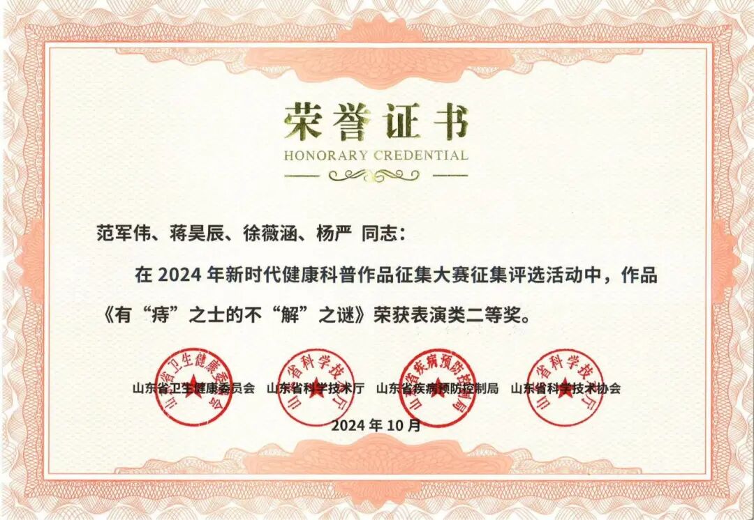 专业联盟:胶东半岛肛肠微创技术联盟、山东省便秘联盟、北京中医药大学肛肠专科联盟成员单位,与青大附院、北京广安门医院等国内重点机构保持畅通合作。