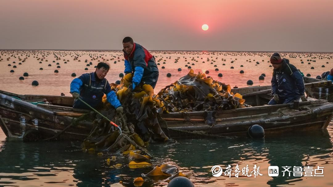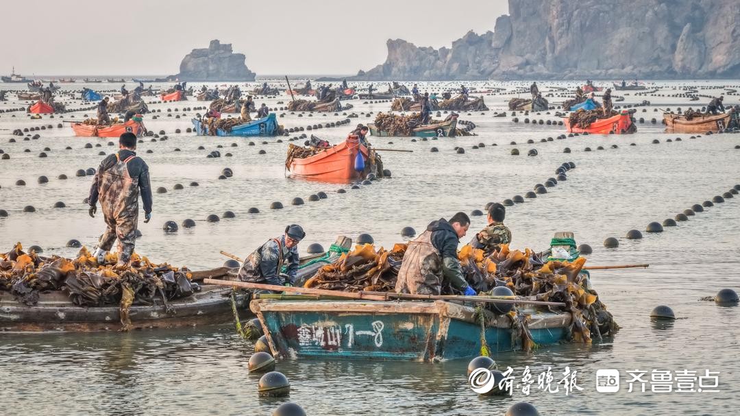 威海18万亩海带迎丰收盛景