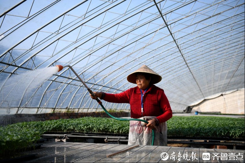 阳春三月,春风送暖。枣庄市山亭区城头镇龙潭家庭农场的日光温室里暖意正浓,一株株番茄苗青翠挺拔、长势喜人,在苗床上整齐排列,工人们穿梭其间,专心浇灌幼苗,检查苗株长势。“我们农场每月保持着100万株左右的种苗订单,育苗管护的每一个环节都得精益求精,半点马虎不得。”农场技术总监李元普说话时,温室里的湿暖空气裹挟着秧苗的清新,满是希望的味道。