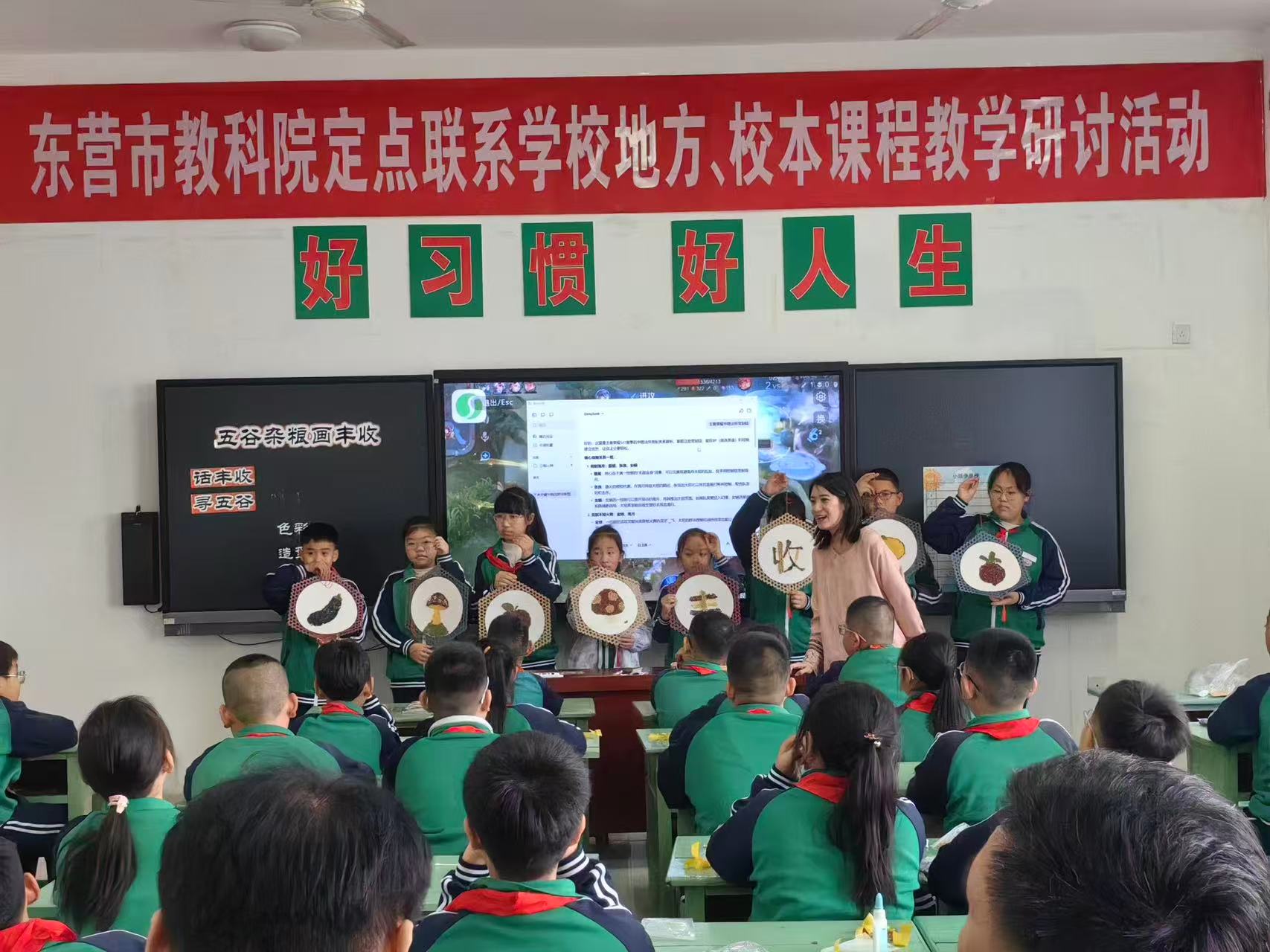 活动中,多位教师带来精彩示范课,将传统文化与实践创新融入课堂。《勿施于人》《巧言者 鲜矣仁》等课程深挖经典内涵,让学生浸润传统文化;《五谷杂粮画丰收》以趣味实践解锁育文路径,《听见彼此·顾韵同心》用互动课堂培育协作意识,董建敏老师的《沐经典之光,赴成长之约》更是为经典教学搭建了优质交流平台。
